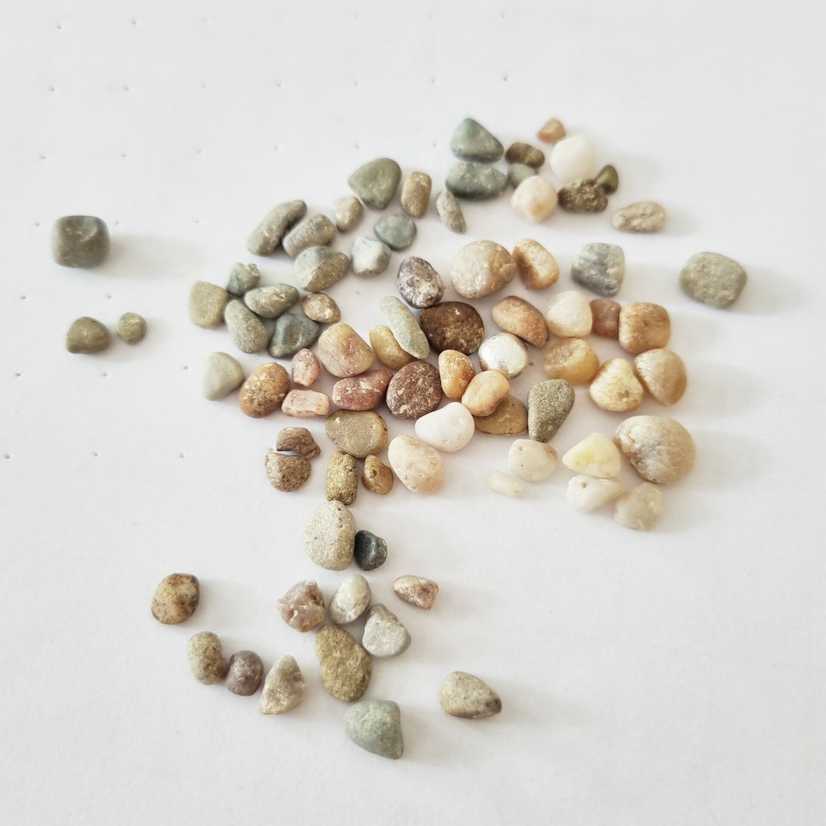 Deze ketting maakt deel uit van mijn project Pebbles Are a Girl's Best Friend. Het is mijn onderzoek naar de creatieve mogelijkheden van een gevonden betonnen boorkern. Deze boorkern, ooit afval, is nu een bron van materialen. De pigmenten uit het gruis en de stenen worden gebruikt voor sieraden en objecten. Het project is een onderdeel van het verkennen van meer duurzame werkwijze die verder gaan dan het gebruik van gevonden en gerecyclede materialen.