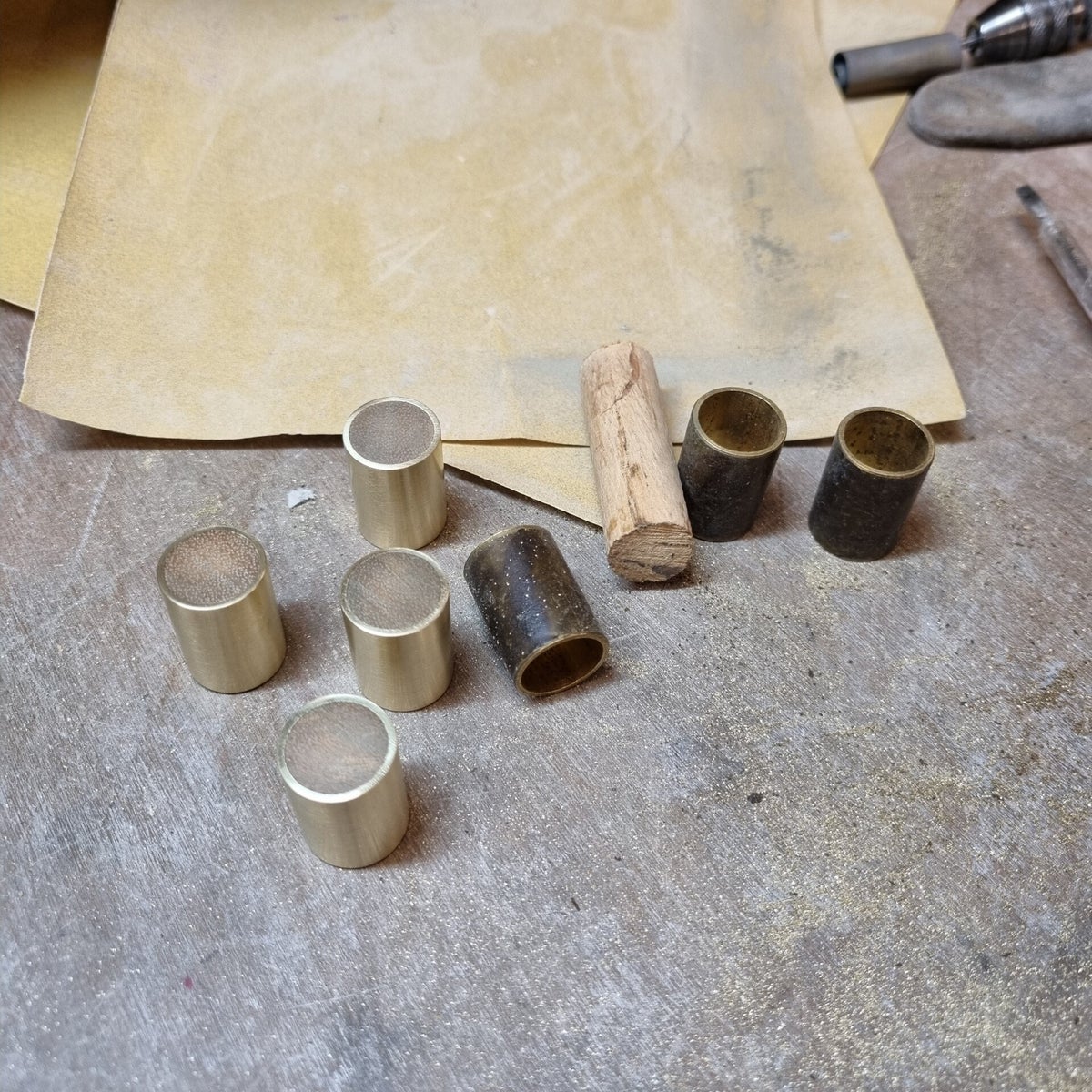 kranten, marmeren kei uit de tuin van mijn ouderlijk huis, gerecycled kersenhout, gerecycled vuren rondhout, gerecyclede messing buis, schroeven, messingverguldsel